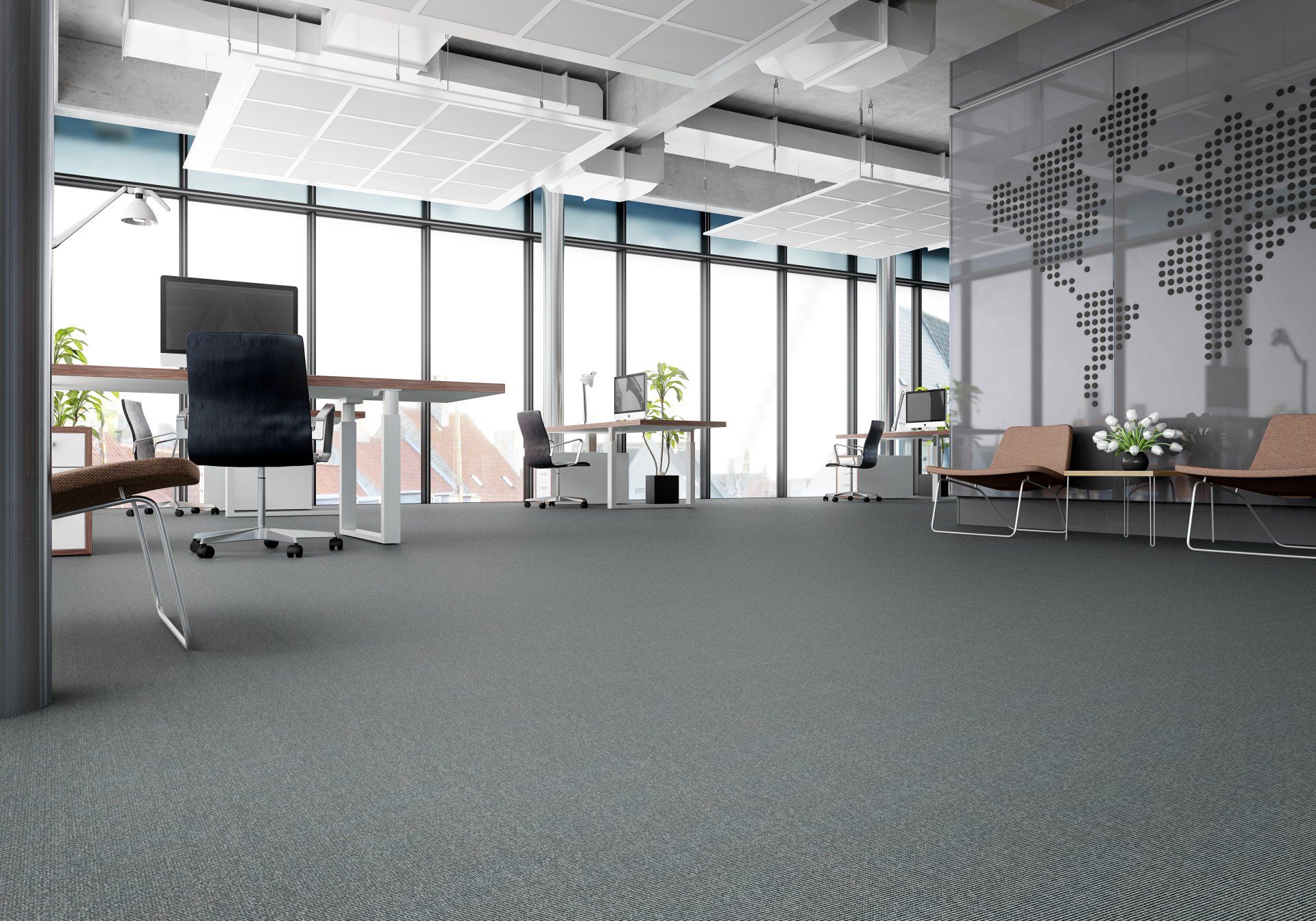 COM 1000, a flat woven carpet, combines comfort with quality and is highly suitable for heavy commercial use.