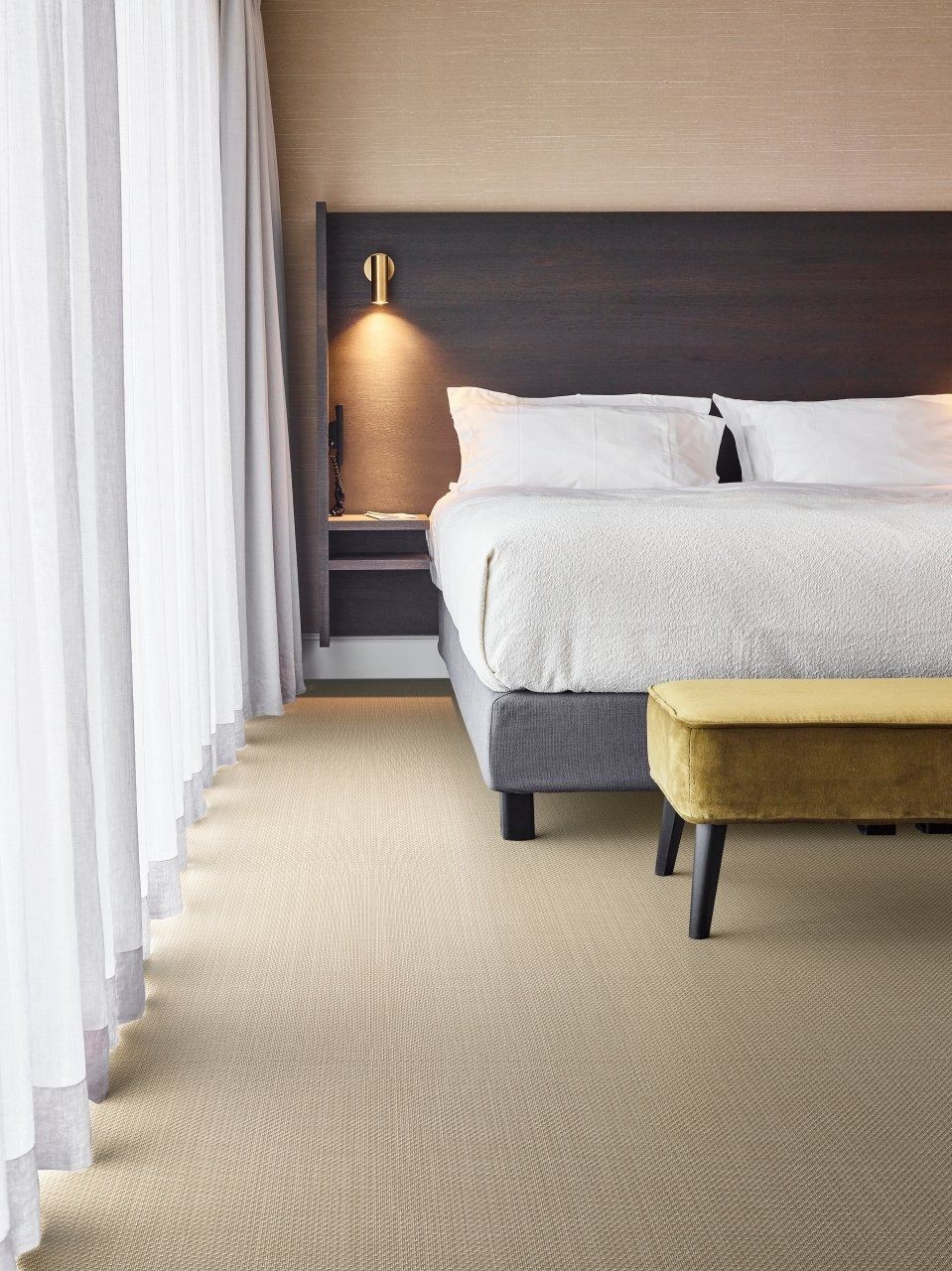 Inspirado em tecidos orgânicos rudimentares, o efeito de trama da Fibre traz suavidade aos projetos comerciais. Um design que complementa e contrasta com a aparência natural.