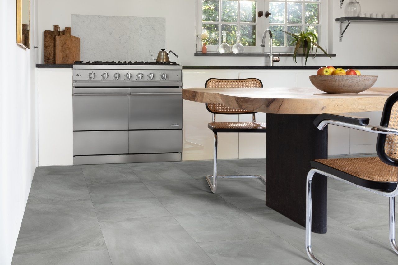 Design de ladrilhos nublado para um efeito de piso líquido. A aparência de aplicação de espátula enfatiza um senso de habilidade, proporcionando uma aparência verdadeiramente autêntica.